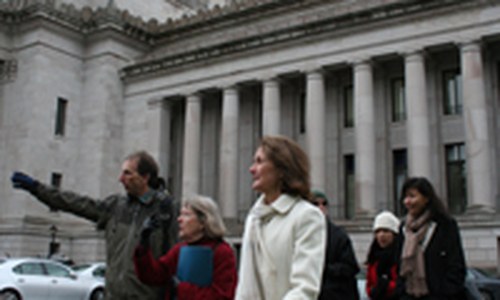 Nearly one hundred hikers are in the state capitol for Hiker Lobby Day, organized by Washington Trails Association. After a morning issue briefing and training session, hikers will spend the afternoon meeting with their state representatives and senators, urging their support for state recreation lands.