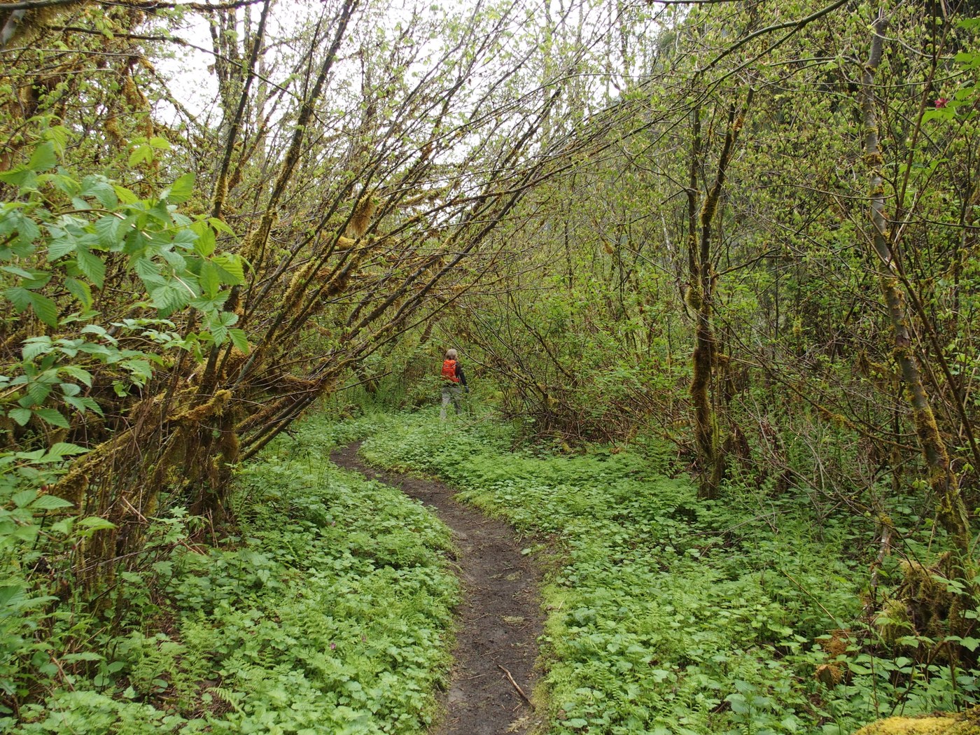 Take a mellow walk on a trail that wanders among large old trees and huge mossy boulders. The trail alongside Baker River takes you on a path of gentle up and downs, splashing your way through stream crossings and past open areas filled with young alder, huckleberry and salmonberry. On a quiet spring day, your chances of seeing wildlife are excellent.