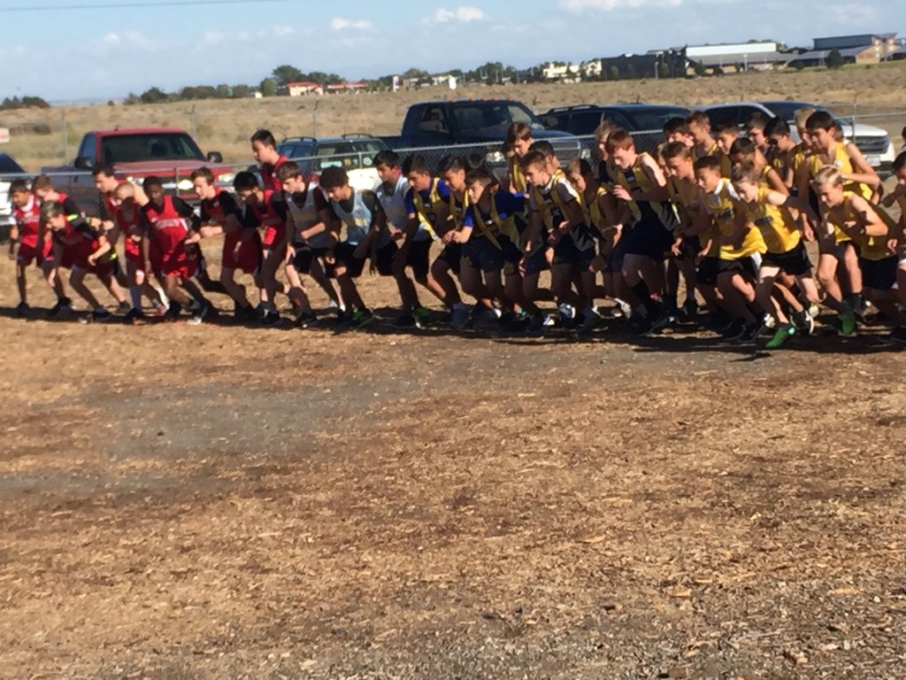The cross-country route is a woodchip-and-gravel trail that weaves and circles through shrub steppe terrain.