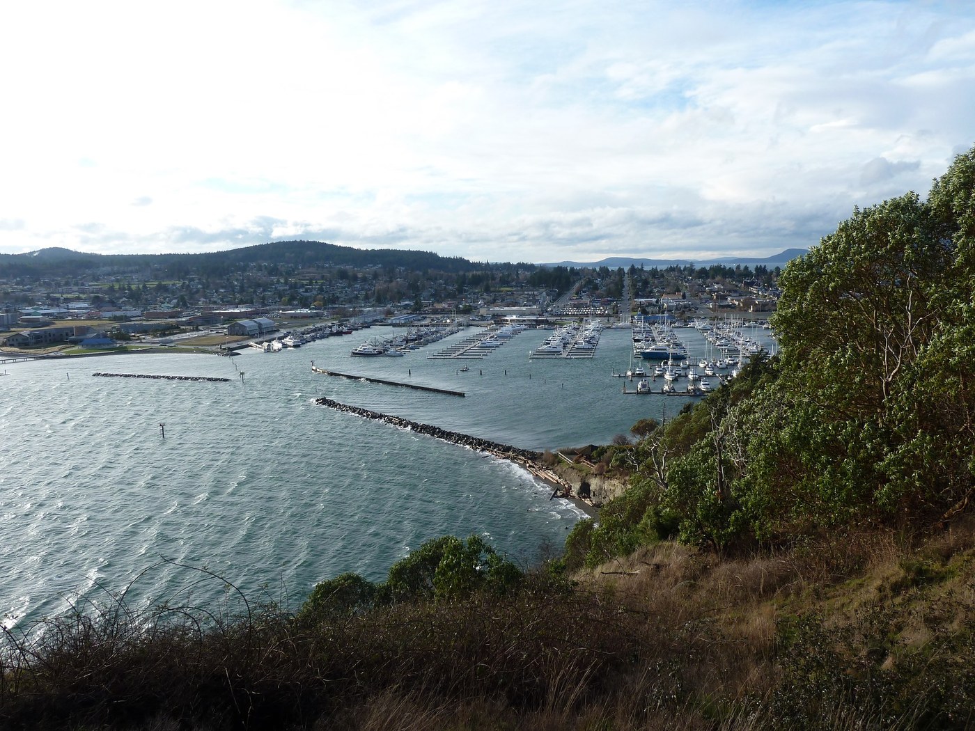 It's possible to scramble down the east side of the cape to the lookout parking area but it's safer to return to W Ave and follow the road around instead. From the lookout area, find good views to the south and east. A sign offers info about Anacortes in the early 1900s when many wood-processing mills were operating.