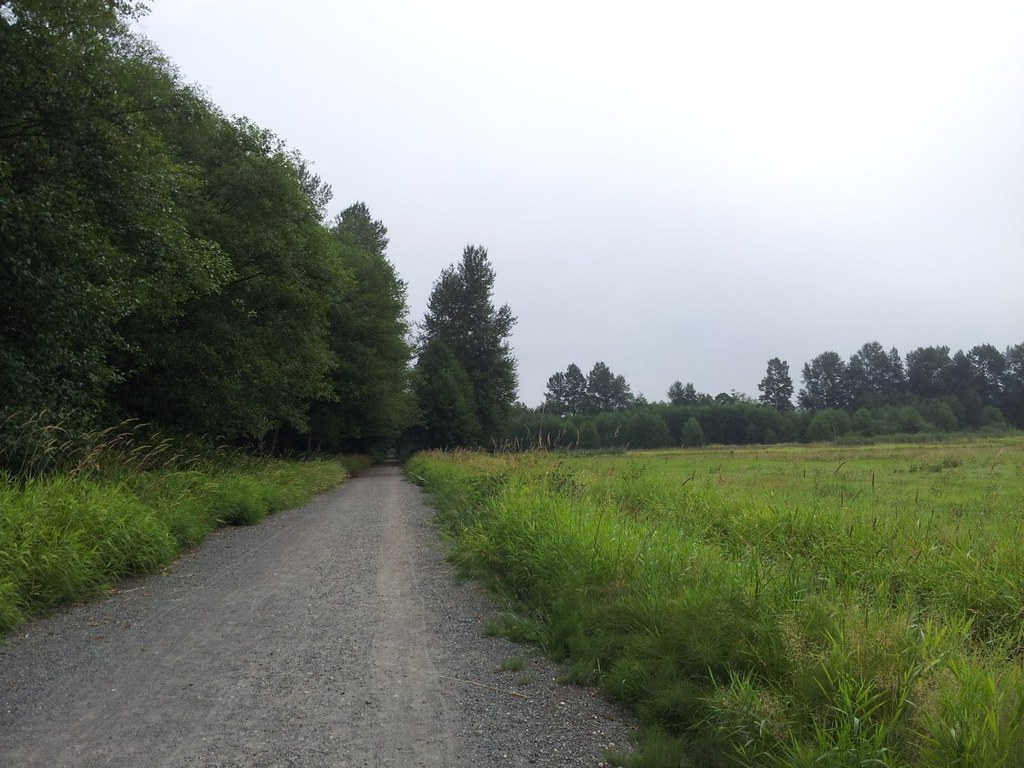 The trail from Sedro Woolley starts in the fertile farmland of the Skagit Valley to the south of the North Cascades Highway. The route meanders back and forth between the Skagit River and the highway, sometimes closer to the river, other times right next to the highway, but always with scenic views of farmland and foothills. In winter one can see tundra swans and snow geese poking about in the fields. Near Lyman, the trail hugs the banks of the Skagit before the river begins a southerly meander. At Hamilton, users pass near log yards and over backwater sloughs where one can spy blue herons, red-winged blackbirds and kingfishers.