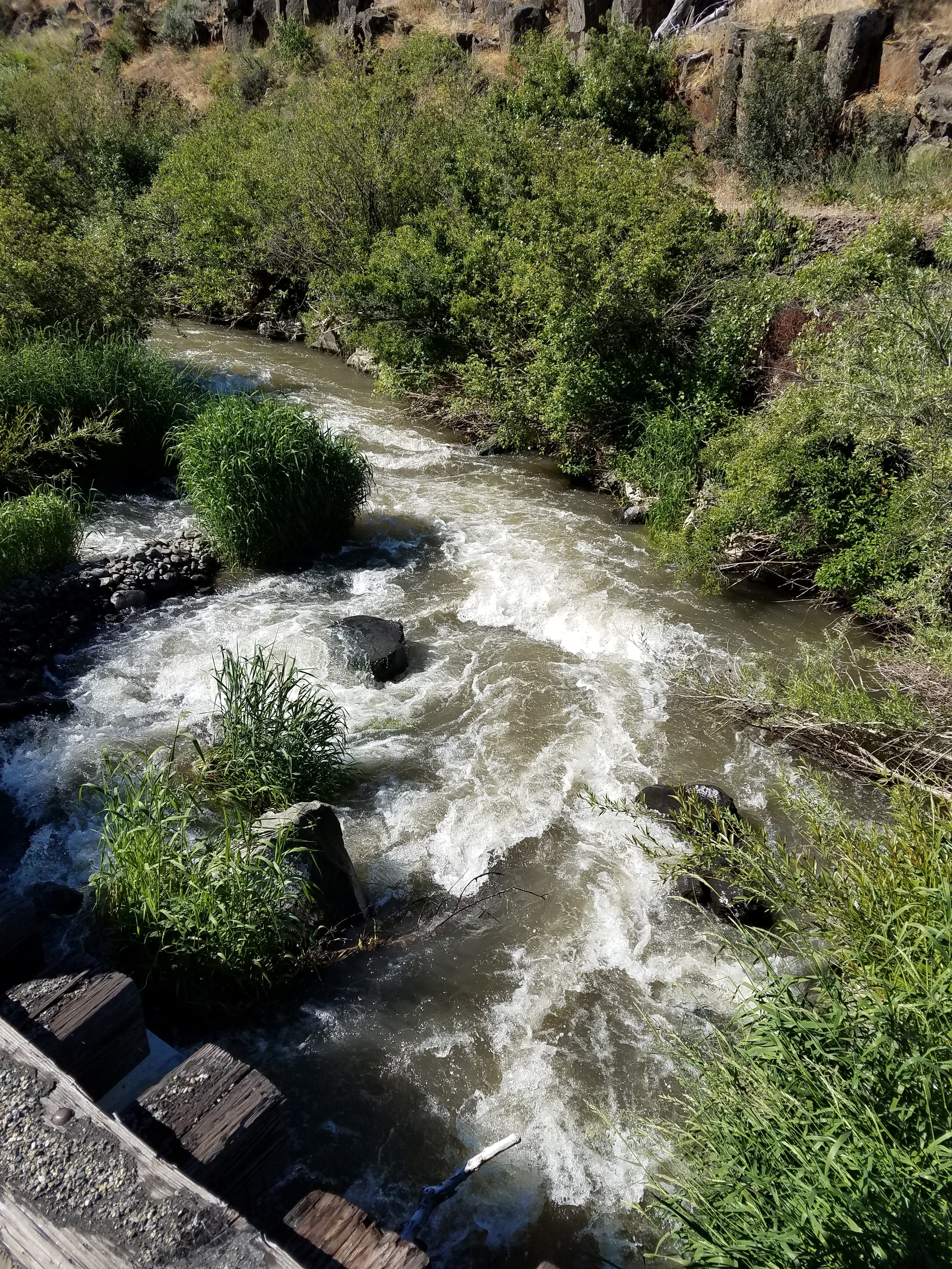 The canyon narrows at a few places where the walls press in, but the trail is wide, flat, and gravel-covered. We stuck to the main canyon trail, which follows year-round Cowiche Creek, but there are several intriguing side trails, including one to a winery (mentioned in other trip reports) and some to the canyon rim, where you can likely get a great view of Mt. Adams. Other than one other intrepid hiker and a mountain biker, we saw no one on the trail, probably because most folks hike it in the cool of the morning or evening. That wasn't possible for us, but we're really glad we did this hike. Many thanks to the Cowiche Canyon Conservancy for their work to make this area accessible to all!