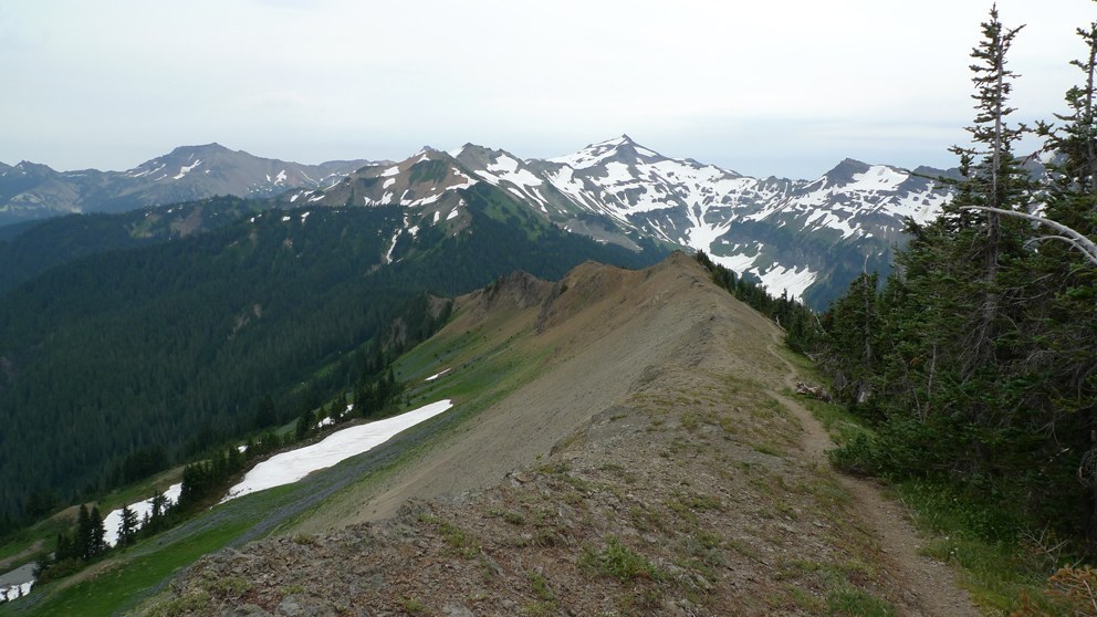 From the junction with Packwood Lake trail, take a switchback and begin climbing through lush green forest on fairly good tread. Though brushy, the trail is easy to follow in this area. Gradually, as you climb, you'll leave the forest and enter a higher montane area, with fewer trees and more shrubbery and wildflowers.