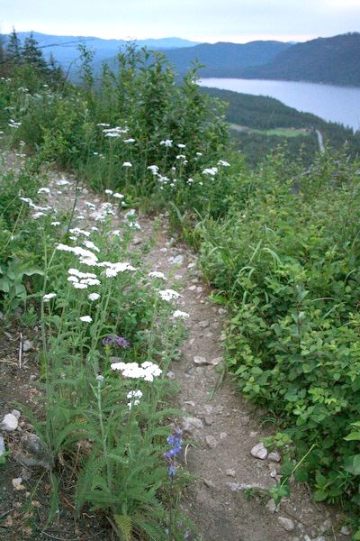 Here there is a small sign that points the way. 100 yards behind the sign is the last reliable water. Fill up and water the dog; the hike really kicks into gear in about a half a mile. At 2.25 miles the old logging road changes back to trail for a mile of short unrelenting switchbacks, followed by three-quarters of a mile of longer, (but just as steep) switchbacks. The ground is drier here, so there are fewer wildflowers, though grouse are frequently heard and occasionally spotted. Take time to catch your breath and look around; here the views really open up: east to Fish Lake and south over Nason Ridge, where the Enchantments come in to view. Gaze downwards on kite sailors and windsurfers on Lake Wenatchee.