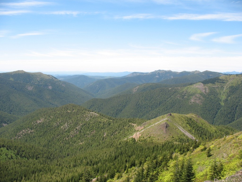 Finally the trail ends at spur road 599. From there you can follow 599 to the saddle between Little Lookout Mountain and Lookout Mountain at about where 599 intersects road 4220. There is a great view of Mount Hood. To get a little higher up scramble up another eighth of a mile to the rocky summit of Little Lookout Mountain (4,000 feet).