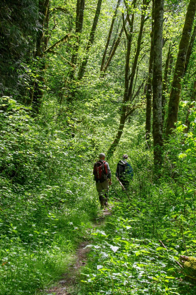 The Lummi Nation has planted conifers along the river and trail, and the canopy of the moss-covered trees offers protection on rainy days. Watch out for nettles along parts of the trail.