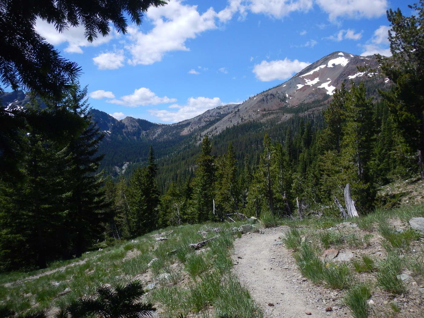 Be on the lookout for a trail branching off to the right. A downed tree curves along the road, but as you approach it, the trail is quite evident. Step onto this trail, and immediately begin regaining the 600 feet you’ve just lost from the lake.