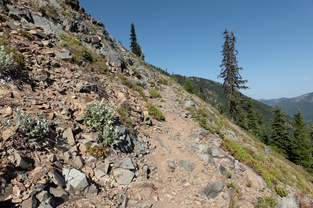 It's a 0.8 mile, steep and switchbacked climb to the Pacific Crest Trail. At the junction, hikers can turn left and hike a mile, then descend on the Bear Gap trail. Otherwise, you can return the way you came.
