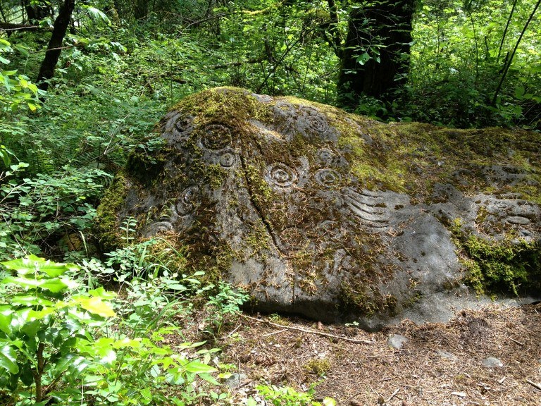 The Hamilton Creek Trail is a 1.25 mile long loop that offers a short tour of the western neighborhood of North Bonneville. Heading west from the downtown station, follow small circular discs printed with "Hamilton Creek Trail". These are posted on lampposts, but if you lose sight of these, faint blue footprints and arrows point the way. You'll cross a large bridge over Hamilton Creek, and shortly after crossing the salmon-bearing creek, get a short peek at the golf course before Hamilton Mountain dominates the horizon.