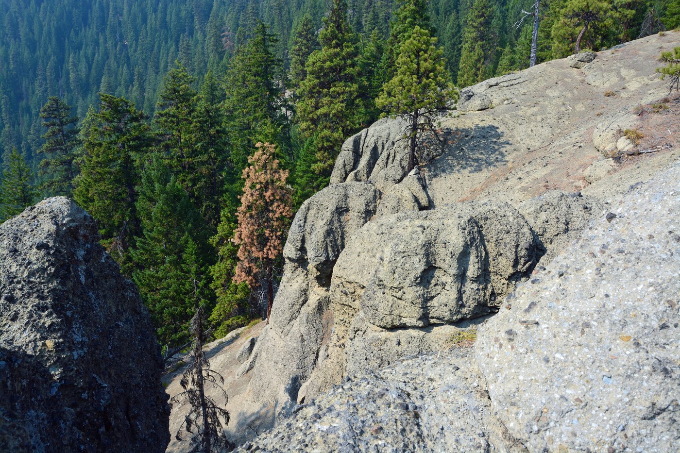 For views, go left from the junction, heading southwest on trail #952, climbing modestly along Fifes Ridge. At 0.4 mile from the junction, views of the valley below begin to appear on your left. You can see the rock formations you passed by earlier.