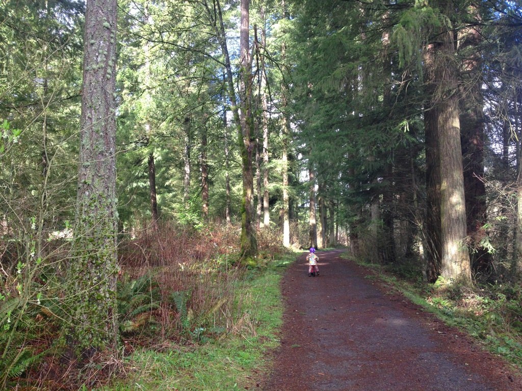 Views of Lacamas Lake are plentiful, as well as the Lake Shore homes nearby. Mile markers let you know how far you have traveled.