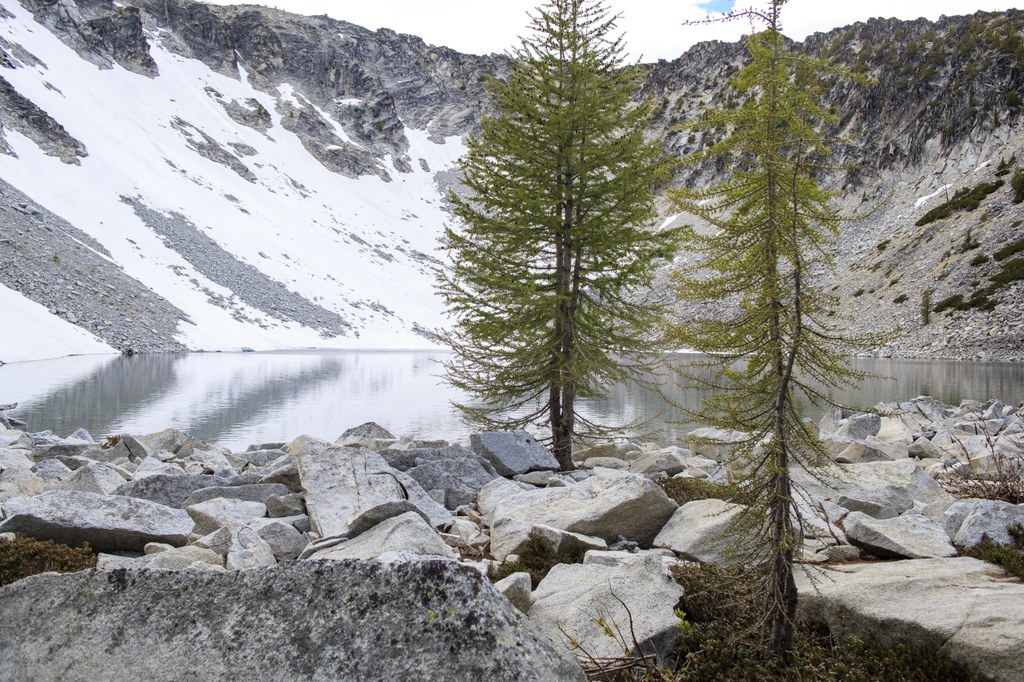 There are a few campsites below the lake to the left (south) and others near or above the lake to the right (north). Libby Lake has lots of trout and, at times, a few hardy souls taking a dip in the cold water.