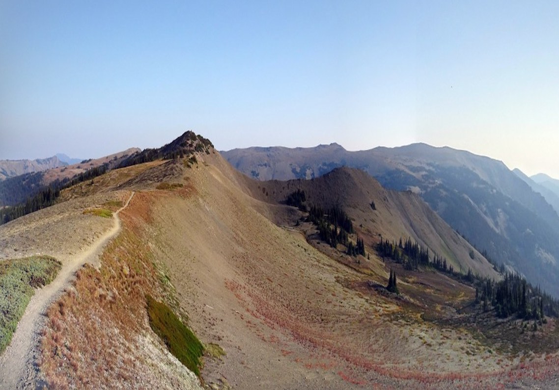 Lillian Ridge Trail starts at a trailhead at the end of the Obstruction Point Road. It is above tree line and stays at or above tree line with a few detours through krummholz. The vistas extend deep into the Olympics clear to the Cascades. Glacier-cloaked Mount Olympus commands the westward view.