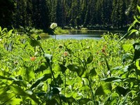 -Side trip 2, once at Joe Lake, the crest trail is a few hundred feet above the lake, the short route up is at the opposite end of the lake through the trees, but the no nonsense route up is right up the steep meadow or chute at the base of Huckleberry mountain. To the North of the lake on the PCT, there are numerous meadows and ponds to explore. Views are pretty good too.