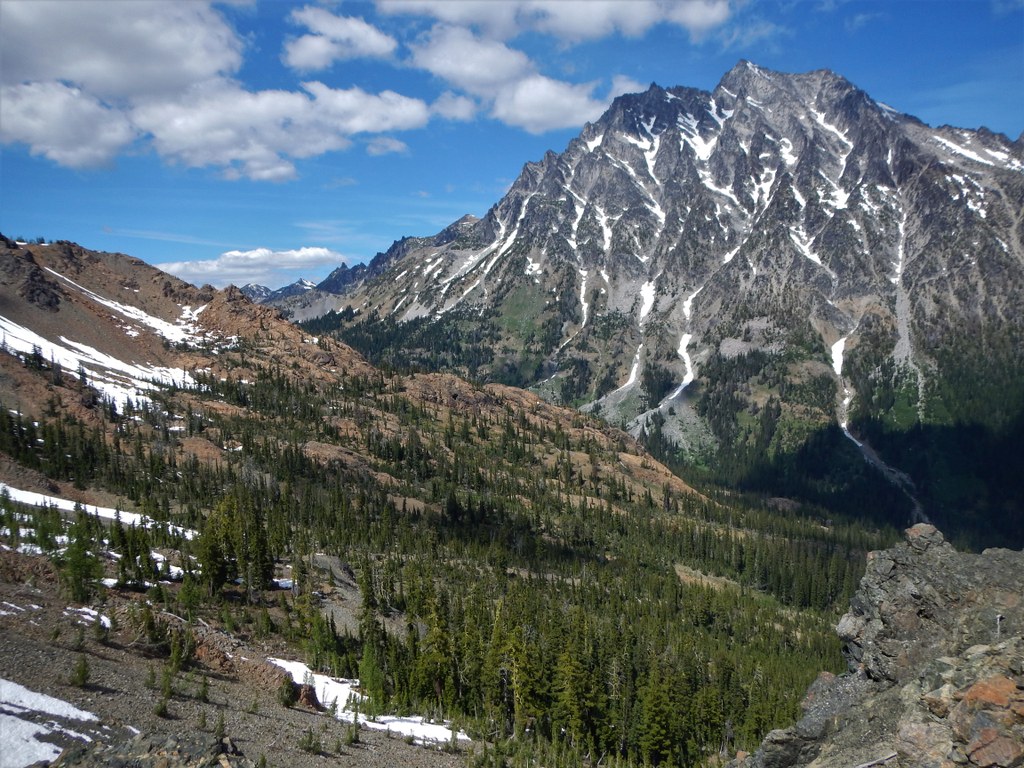 It's a knock-your-socks off view of Mount Stuart; just about as close as you can get to the giant massif and still see it from base to top. Take a breather in the small pass and have a snack before returning the way you came.