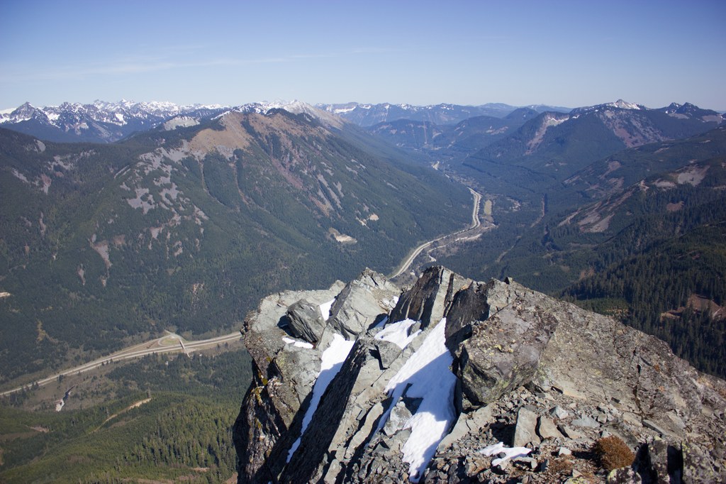 Views from the top encompass the full range of I-90 peaks, Snoqualmie Pass, and much of the Alpine Lake Wilderness. As you carefully descend the rocky summit, think of the pioneers who first documented these lands. General George B McClellan visited this area in 1853 surveying (unsuccessfully) for a route for rail lines to pass through the Cascades. He chose the never-used Yakima Pass. The more popular route was Snoqualmie Pass, home now to the major interstate highway you used to get to the trailhead.