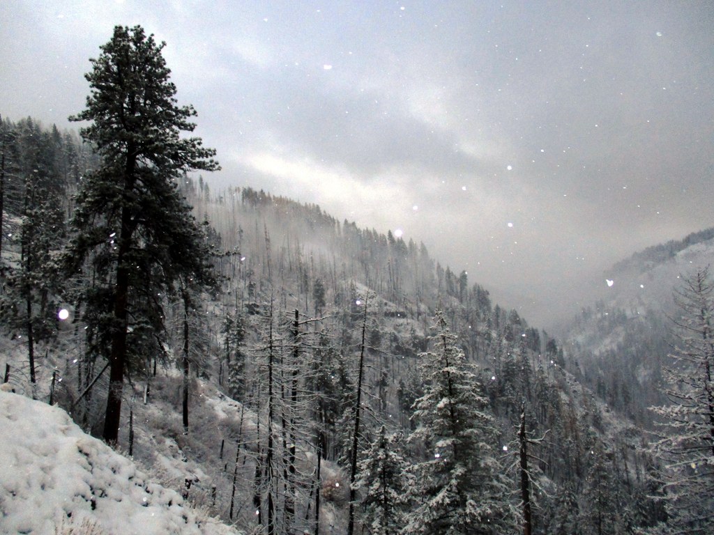 The Middle Point Ridge Trail immediately crosses the North Fork Touchet River on a wooden bridge passing by a campsite along the riverbank. The trail starts as a mellow stroll through deep woods but after 0.3 mile begins to climb reaching a switchback with views up and down the valley at mile 0.9. Take a break here to stretch and enjoy the views because the grade steepens gaining 1100 feet in the next rocky mile.