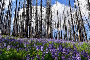 From the stone staircase at Paradise, climb steeply on the asphalt Skyline Trail. Follow signs to stay on the Skyline Trail until, at half a mile, you see a sign for the Deadhorse Creek Trail. Veer left (north) at that junction to connect with Deadhorse.