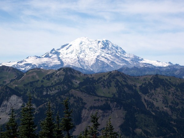There used to be a fire lookout up here, but the remains are pretty scant at this point. Thankfully, there are plenty of more interesting sights. On clear days, Mount Adams, Mount Rainier, Mount Hood, Glacier Peak, and the Olympics are laid out on a perfectly photogenic horizon. You may even spy mountain goats or elk grazing in the meadows or getting water at Basin Lake just below. Return when you're ready, picking a few tasty huckleberries along the way.