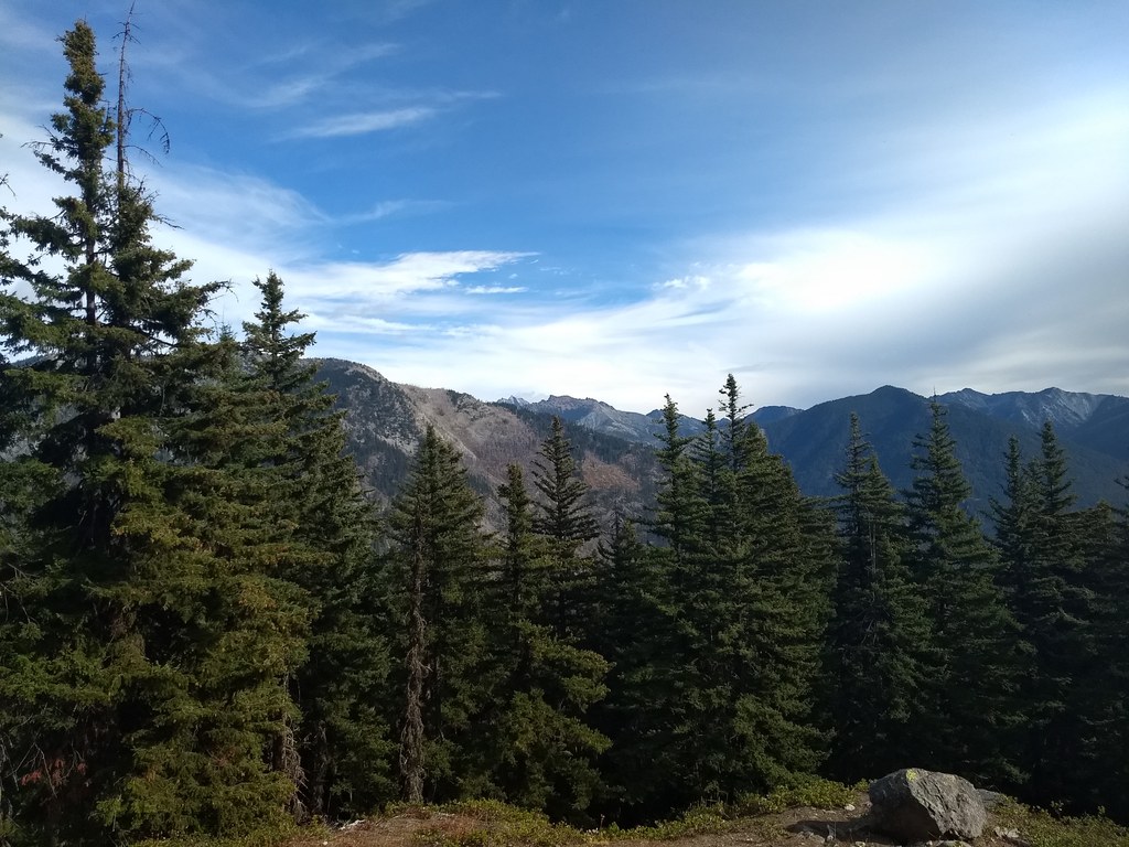 Almost immediately after the split with Waptus the trail begins climbing in earnest. In the first two miles, you’ll gain nearly 1500 feet of elevation, with a very few short flat sections on which to catch your breath. After about 2.2 miles, the trail flattens out on what you may think is the ridgetop. Don’t be fooled – you’ve got more climbing to do! Relish this flat section while it lasts.