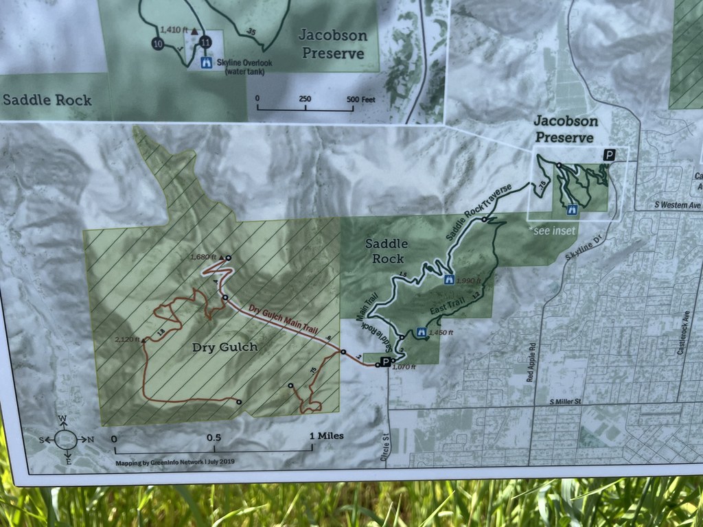 Mileage listed with this hike description does not include the portion that is within the Jacobson Preserve, which can vary depending on the route chosen.