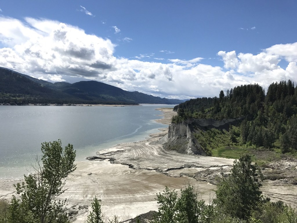 Turn left at the sign and follow the trail to several overlooks along Lake Roosevelt. Watch for weathered National Park Service markers on the trees and the sign pointing out an old ferry landing across from the mouth of the Colville River, a nice spot to pause for a picnic or try your fishing luck. Farther along the trail, a sign points out the striking Reed Slide Overlook with its sand cliffs gradually giving way to the forces of water and gravity. Whitetail deer abound, and near the water, one can sometimes glimpse bald eagles roosting in the trees or gliding over the lake. As the trail returns inland, watch for the sign pointing out the return route on the right just before reaching the irrigated fields (managed as part of the winter forage for the resident wildlife).