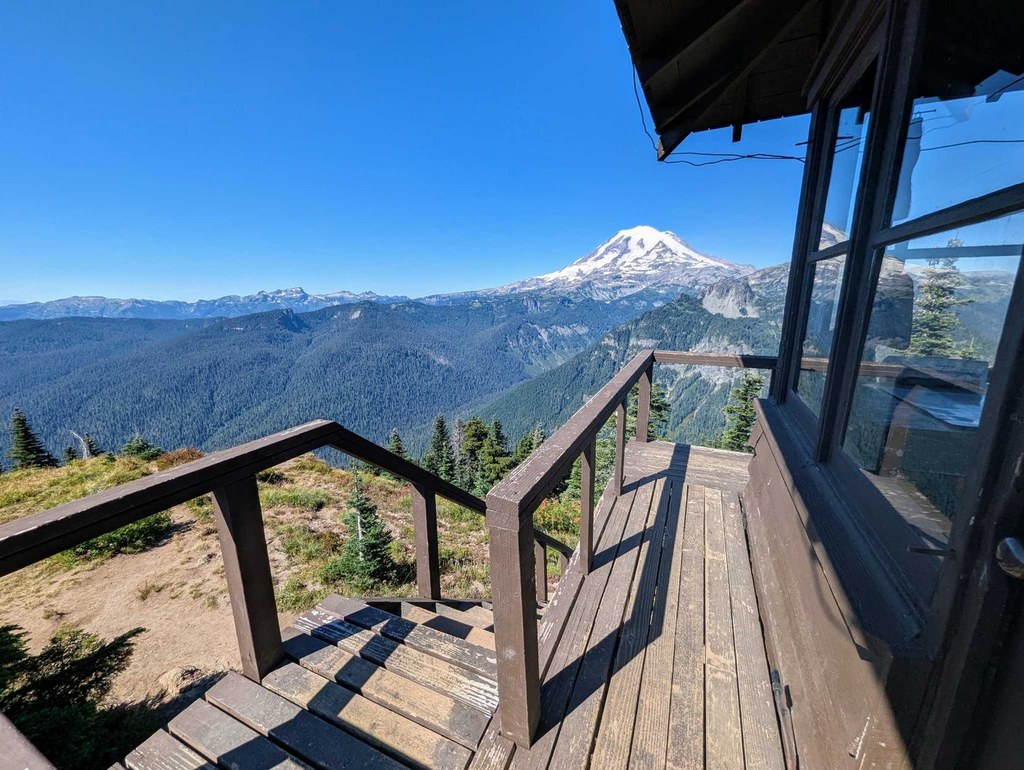 Just 0.25 miles from the summit, catch your first view of the lookout tower standing tall on Shriner Peak. Once the first line of defense for forest fires, the two-story tower now serves as a rest area for weary hikers taking in the view from the summit: Mount Rainier, Little Tahoma, Sourdough Ridge, the Cowlitz Divide, Mount Adams, Goat Rocks, and Mount St. Helens. With high-elevation panoramas, a historic landmark, and gorgeous autumn color, you'll be thankful you gave this lonely trail a chance.