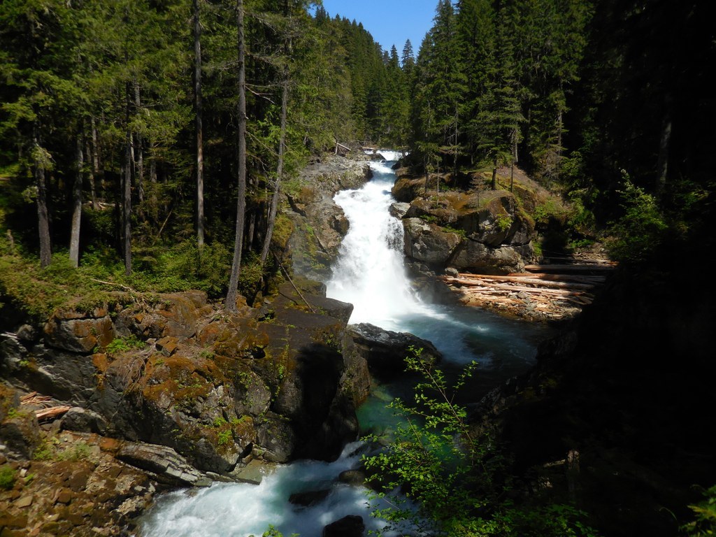 Continue through deep forest, climb gradually to an overlook of the Ohanapecosh River as it crashes down in a tumbling, vivid-white cataract. The trail begins to switchback down to a bridge over the river, which offers impressive perspective on the waterfall and the river rolling out beneath you.