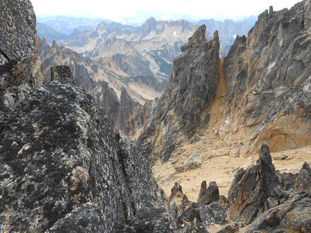Minutes into the approach hike grand views open to Liberty Bell, Hinkhouse Peak, the Kangaroo Ridge and the hairpin turn on Highway 20.