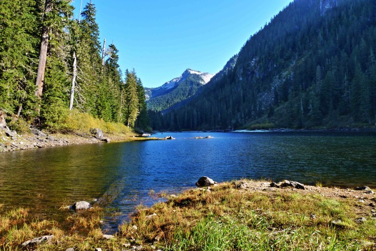 Slide Lake is a short but remote hike that samples a rugged slice of the Glacier Peak Wilderness. Popular among anglers, the hour long drive up the single lane logging road deters crowds and ensures relative solitude. Magnificent old growth and a mountain lake with views toward snowy peaks are the reward.