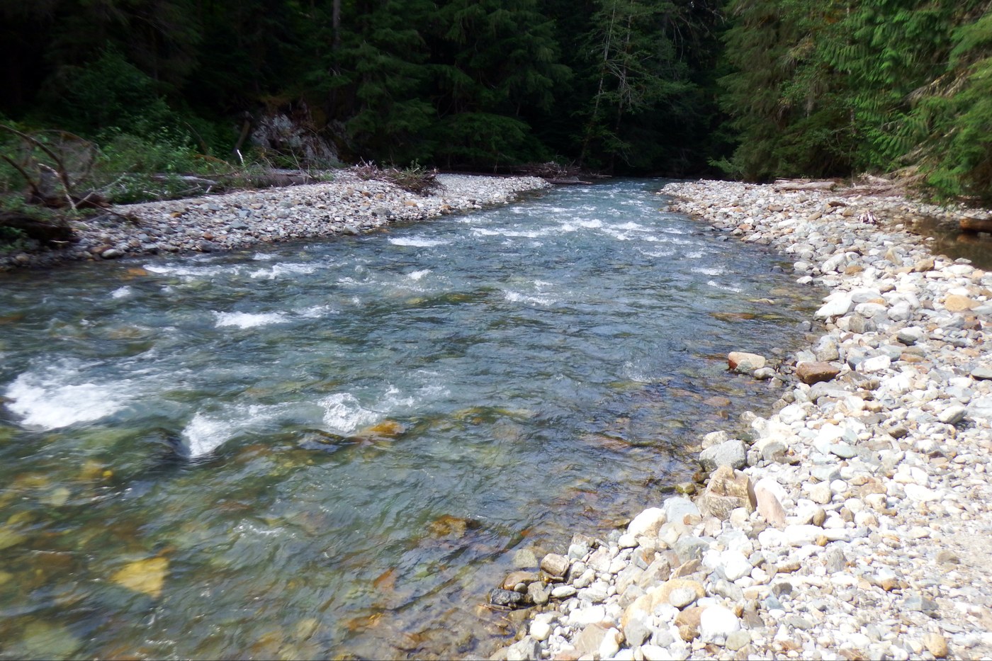 This new trail is a nice alternative to the Cascade Pass trail. The scenery is not as large scale grand, but it is a beautiful trail with mountain views and a destination lunch spot by the river. The trail that once was on the other side of the river had been deemed too dangerous, due to dead standing timber, for volunteer groups to work in, so it may be a while before it is restored to its former status.