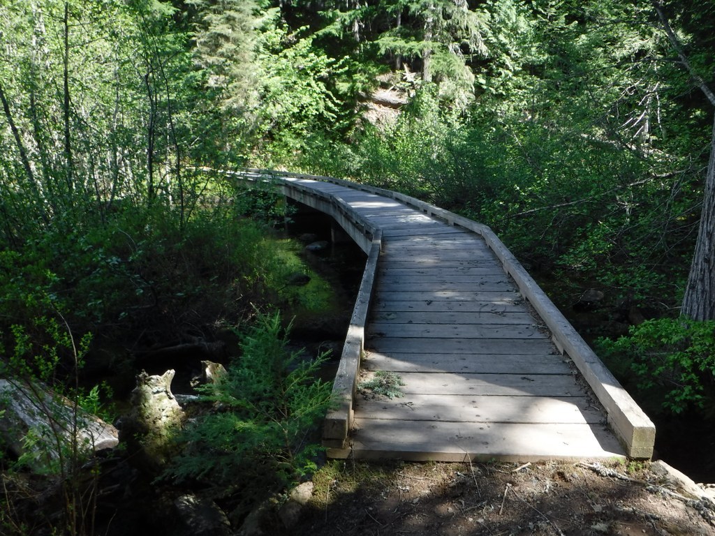 The trailhead is next to the boat ramp area at South Skookum Lake Campground. It is a 1.3-mile long loop featuring a 0.3 mile spur trail, following the west and south shoreline of the lake and offers scenic views of the lake.