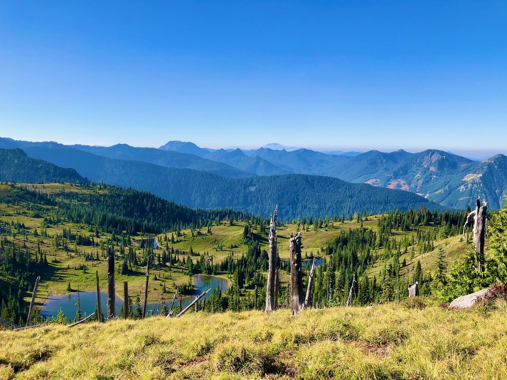 Find the trailhead on the south side of the lake, and keep right at the junction with the Wonderland Trail a quarter of a mile in. Prepare your knees for a long descent as you immediately head down a series of long switchbacks toward the Mowich River. After following the river up a ways and crossing via log bridge, you will get to recoup all that lost elevation gain (and then some) with the ascent up to Sunset Park.