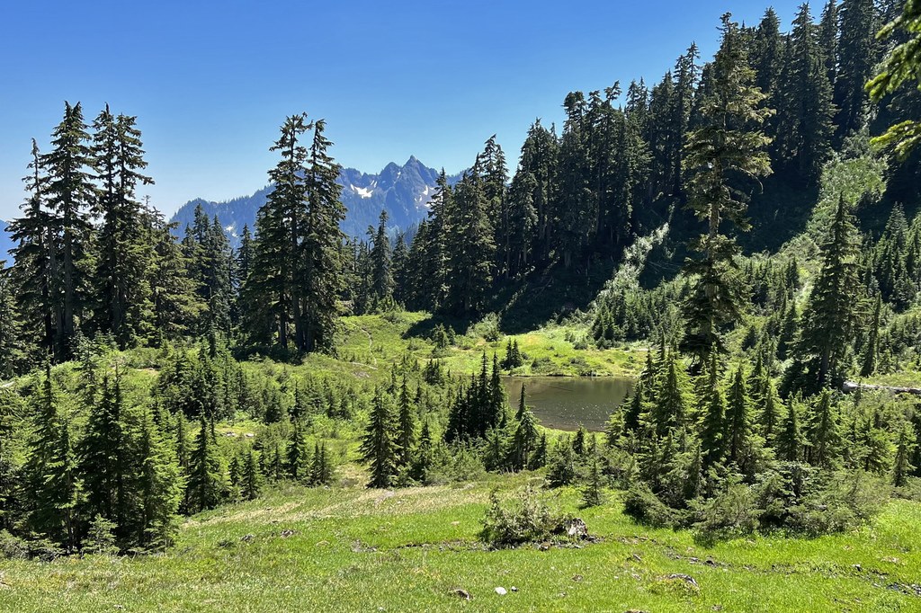 The Upper South Fork Skokomish River to Sundown Pass can be considered a tale of two trails. The first half stays low in lush valley bottom on brushy but obvious tread, while the second half makes up for lost time, ascending steeply through subalpine forest between wet meadows on faint and broken tread. The scenery improves with every step near the top, and reaching Lake Sundown is a welcome reward after all the toil.