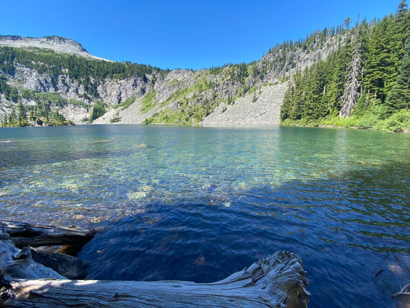 The trail continues past Snow Lake to Gem Lake, 4.9 miles from the trailhead, and continues on a further 1.9 miles to Lower Wildcat Lake. The upper lake is a brushy bushwhack .7 miles above the lower lake. Be sure to have a map and route-finding experience.