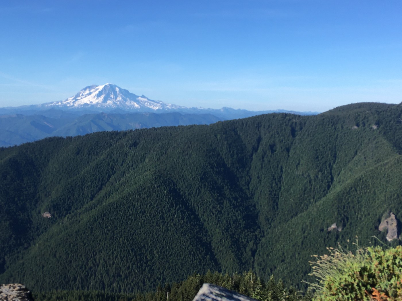 For Vanson Peak, press on straightaway along the southern approach to the summit. Climbing another half mile with 300 feet of gain, note to stay to the right at an intersecting trail two-thirds of the way up. Soon reach a clearing worthy of a fire lookout and soak in the expansive views: northeast to Mount Rainier, southeast to Mount Adams and more immediately northwest to Riffe Lake.