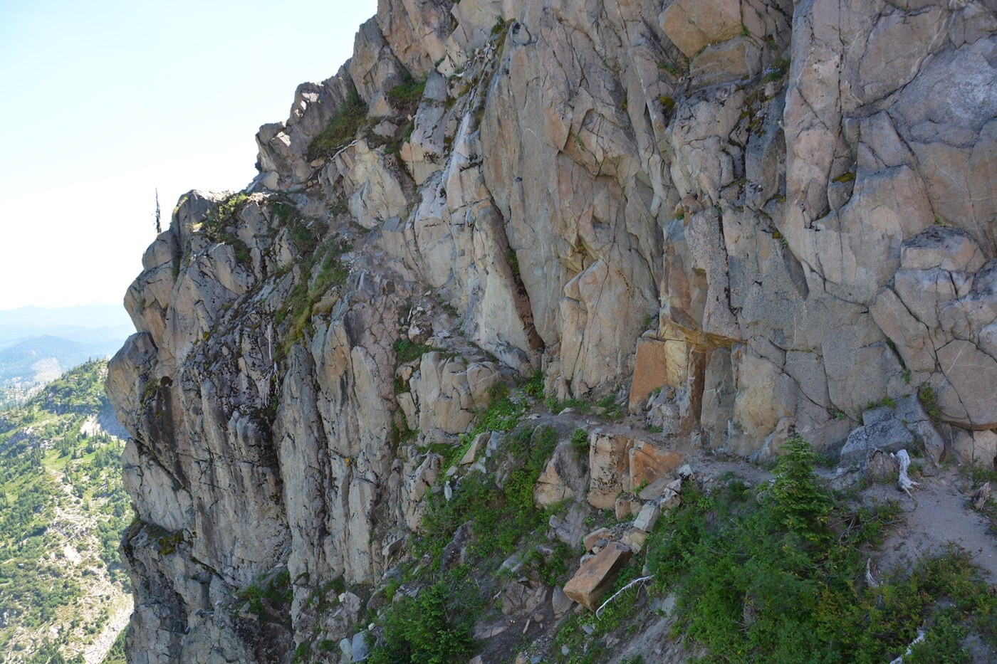 Scramble little ups and downs constantly to negotiate your way. Sometimes you must skirt drop-offs of several hundred feet. The views are outstanding in clear weather. But you will need to be more attentive to your footing than to the views. In some places, the route is so narrow that you want to be carrying nothing wider than a day pack. And there is no water along the ridgeline. Expect this section to take you 2 to 3 hours, depending on your skills.