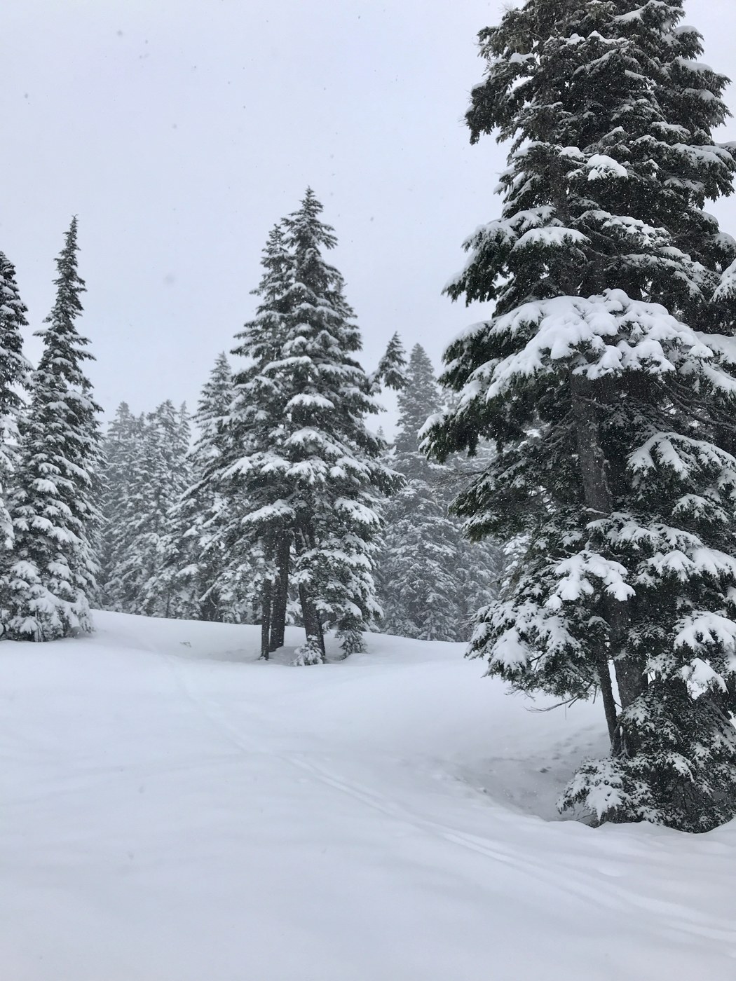 We hiked in the morning before a big snowstorm, so assume some of our info is out of date already. We started at 9am; finished at 3. Normally we do this in 5 hours but today did some exploring which added time. The Nordic Pass trail (following blue diamonds) was perfect today. Somebody preceeded us and so we never broke trail. We only saw 1 person the entire day (mid week). Our only slight detour was about 2.5 miles in there is a creek crossing that wasn't safe and so the current boot trail takes your 30 yards off trail to a good crossing.