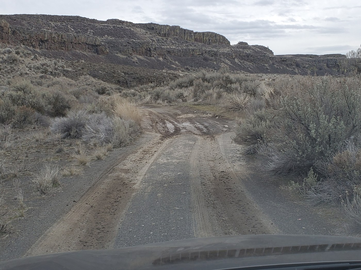 I was up there about a week ago. Keep driving up that dirt you were on about 3 miles to the irrigation tunnel. Park there since the road gets bad beyond. Walk up the road and it climbs out of the coulee in about a half mile or so. From there you just wander around. I went east and then south to a pothole lake I saw on Google earth. Lots of old roads and tracks all over. More of a cross country ramble than a trail hike.