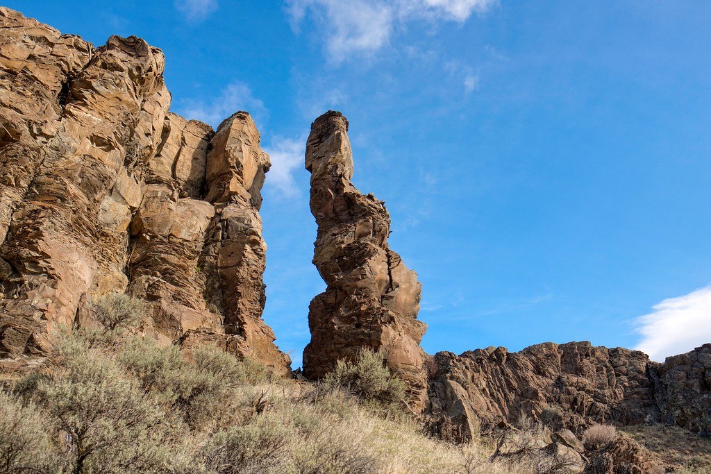 Spent the weekend exploring the Frenchman Coulee area, specifically Echo Basin which lies just to the south before heading north to camp in the gully west of the Gorge Amphitheater. There were climbers a-plenty on the rocks the first day and a short but intense rain storm on the morning of the second day. Stumbled across a massive sand dune, an interesting pillar, a frozen waterfall, and an old stone crib. Highs around 60, low of 30. Stars were out in force until the clouds moved in. Brought a Sawyer Select S1 filter to allow removal of pesticides from the water but unfortunately it couldn't remove the awful soapy aftertaste and Crystal Light drink mix couldn't cover it up either. Looks like it's back to water carries next time around.