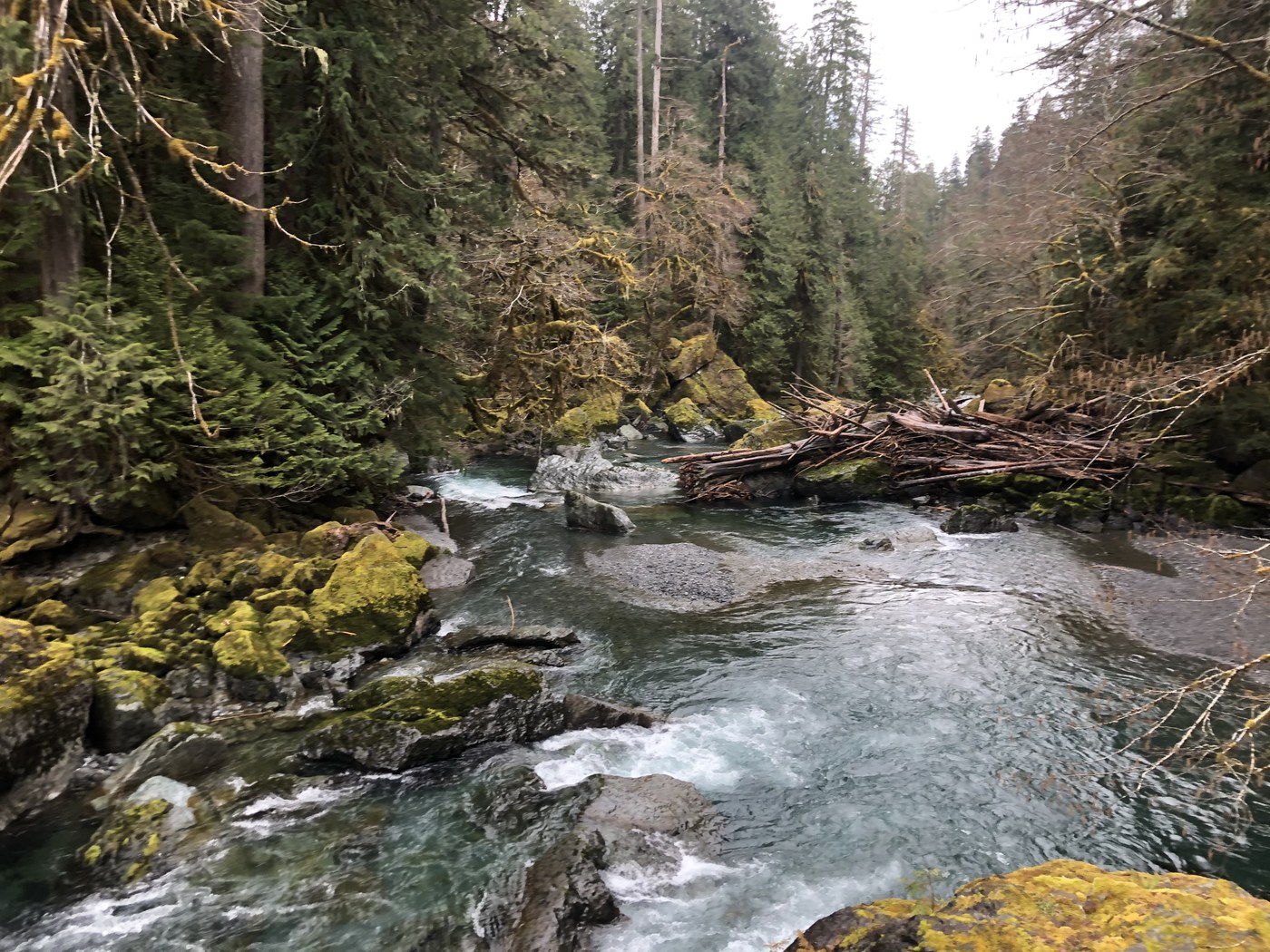 Staircase rapids was a nice, easy loop. Cool views and a well maintained trail! Hardly anyone on the trail, but it was a little rainy. Four streams, however, was not as passable! The first 2ish miles were nice, a few downed trees, but not too difficult. The last 0.5 miles of what we could hike was tough. The trail was very overgrown and large downed trees slowed us down. We were trucking along the edge of a cliff, following what looked like a trail, when we hit a part that path that was impassable. It was a beautiful hike and an adventure for sure, but know that four streams is only passable for 2.5 miles. I recommend taking the extension on the north side of the river.