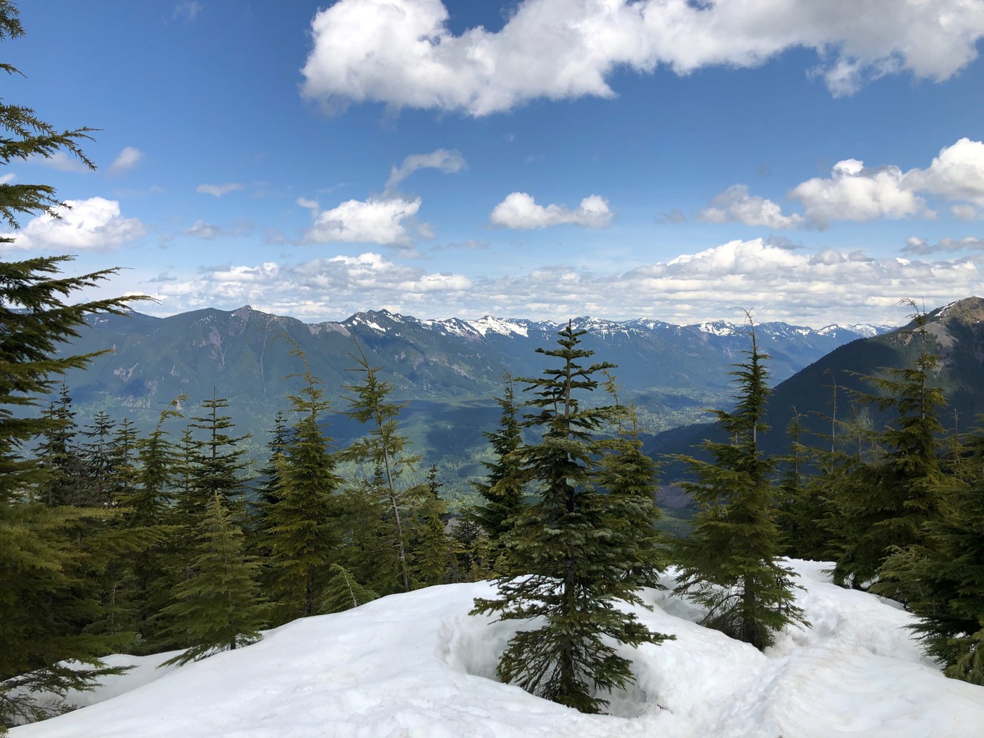 There were some downed trees but nothing too onerous. On the descent, I did slide a few times because the snow was getting packed and icy from all the foot traffic. I was glad to have poles but others seemed to manage without them. I had microspikes but didn't use them (although probably should have on the descent.) Lots of spring flowers in bloom out there, too.