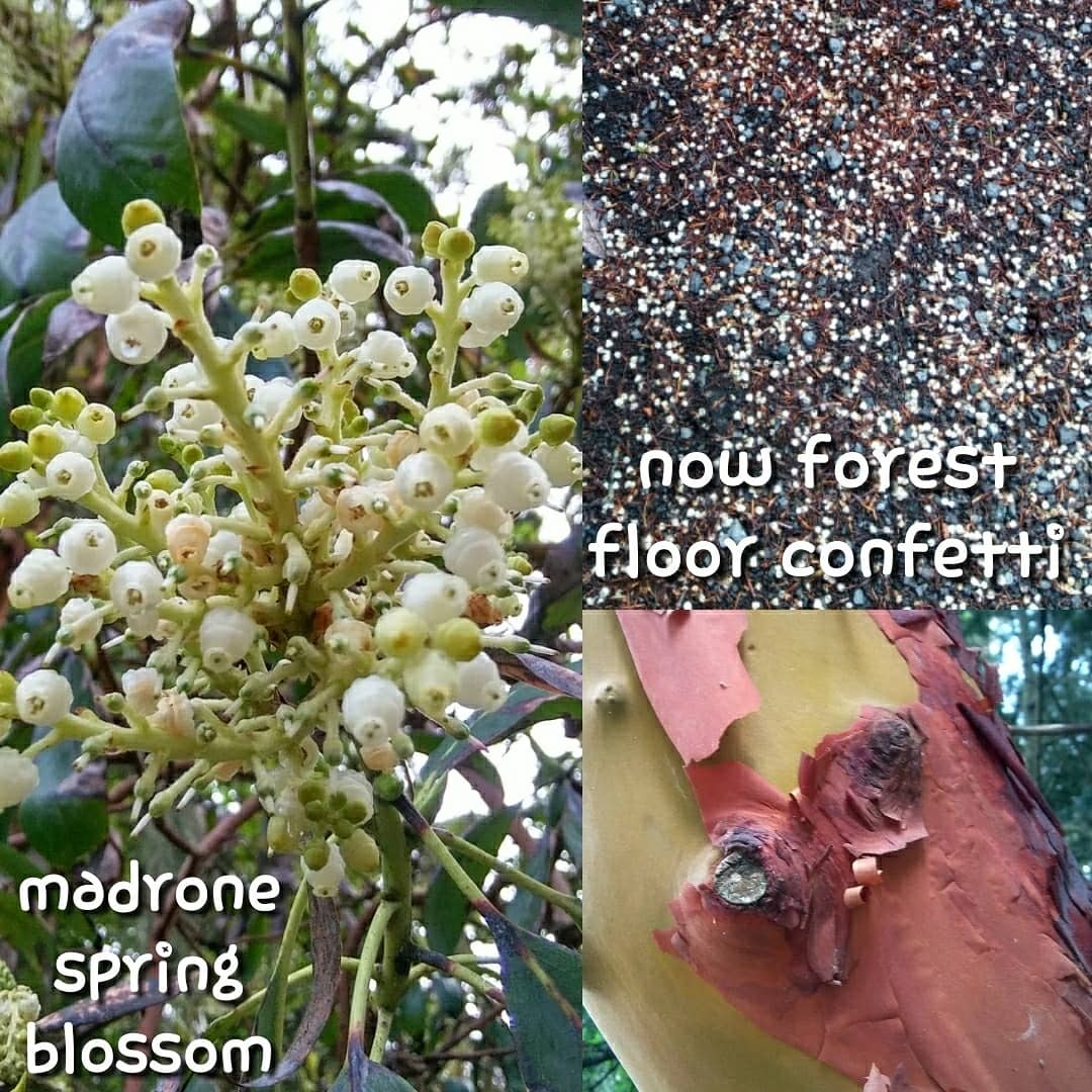 The madrone trees are just lovely this time of year with their showy blossoms and forest floor confetti on display. Spotted a pair of California quail running through the madrone's shade for deeper cover. So much to observe in this small park area if you slow down and take the time.