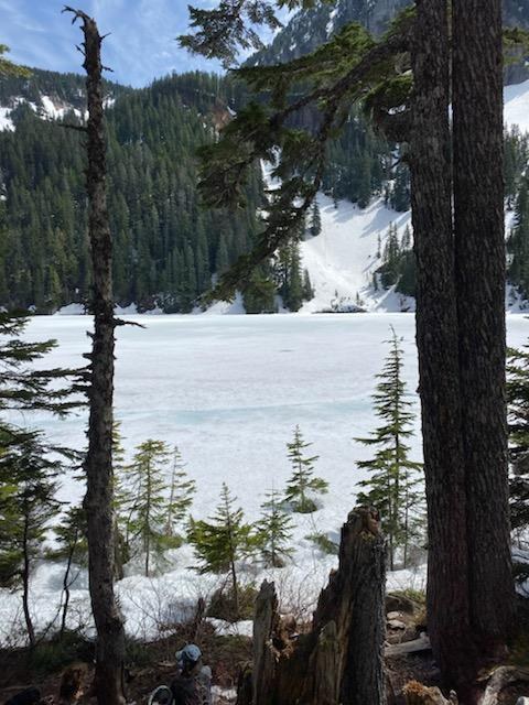Parking lot was closed but plenty of space to mark along the road leading up to it. It was a beautiful day and not too much traffic on the hike. Left the car around 11:30 and returned around 4. The lake was amazing. The snow fields towards the top were a bit challenging, trekking poles would be helpful. But easy to stay on the trail. It started to thaw a bit towards 3-4 which made the hike more challenging on the way down.