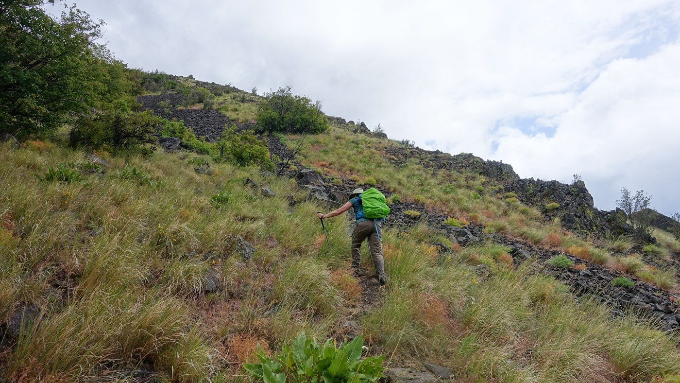 The trail along the ridge is a little more difficult to follow. Less vegetation up there means that the difference between trail and not-trail is less, plus with all the rocks, you can't see that far ahead. At one spot, the trail disappeared at a rock outcropping and it took us a while to figure out it went between a gap in the rocks.