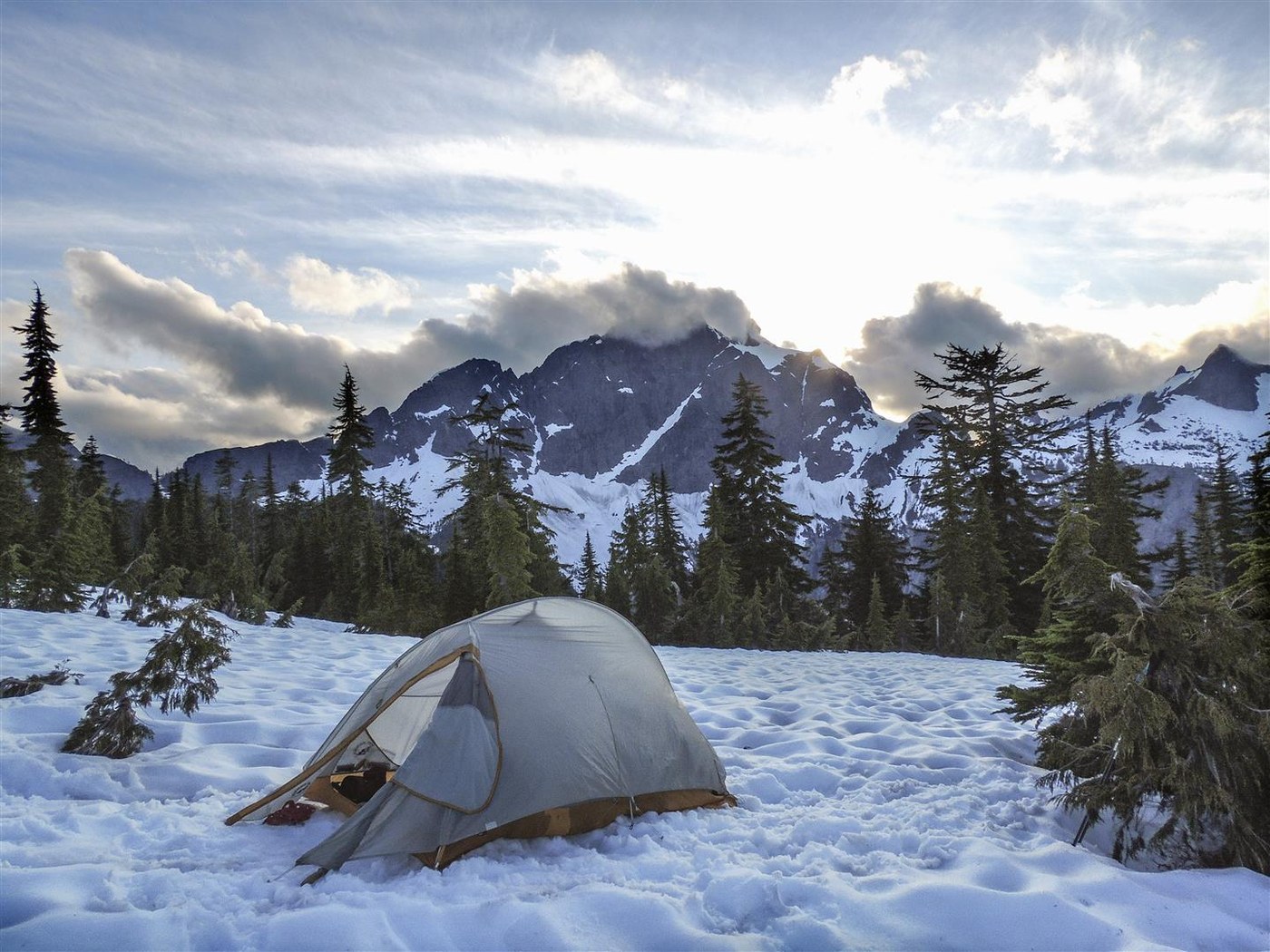Temperatures ranged from 58 degrees F. during the day to 40 degrees at night. I was comfortable in my tent, and glad that I decided to wait for the sun to drop behind Three Fingers Mountain.