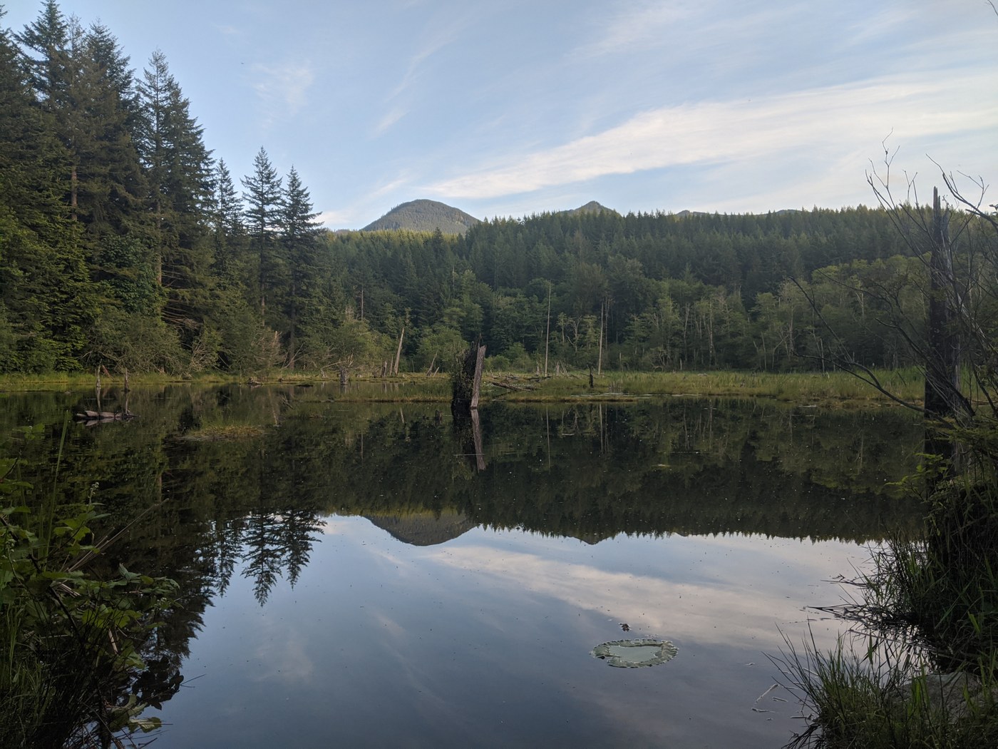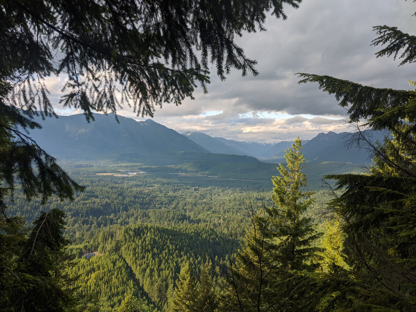 The road to Rattlesnake Lake is now OPEN, so the Cedar Falls Trailhead is accessible. Signs on the way in prohibiting hiking are only applicable to the Rattlesnake Lake Recreation Area, so if you stay left you can enter the parking area in Olallie State Park (Discover Pass required) and hike eastward from there. Only a handful of cars in the lot at 6:30pm on a perfect evening for a trail run.