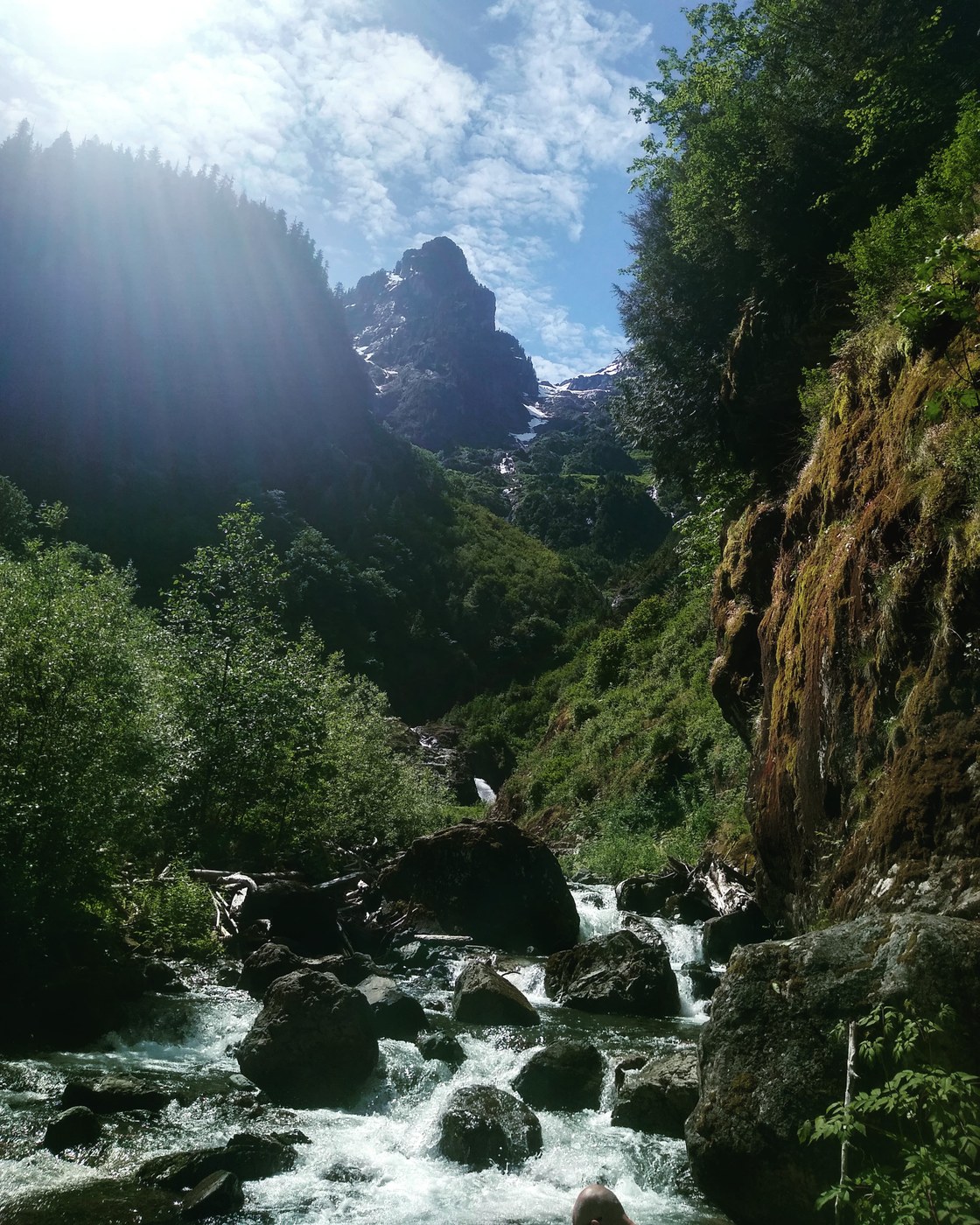 Lovely day, lovely hike. We were fortunate to meet someone who told us to follow the (currently dry) creekbed behind the small pond to the left of the mine too see the mountain and the falls.