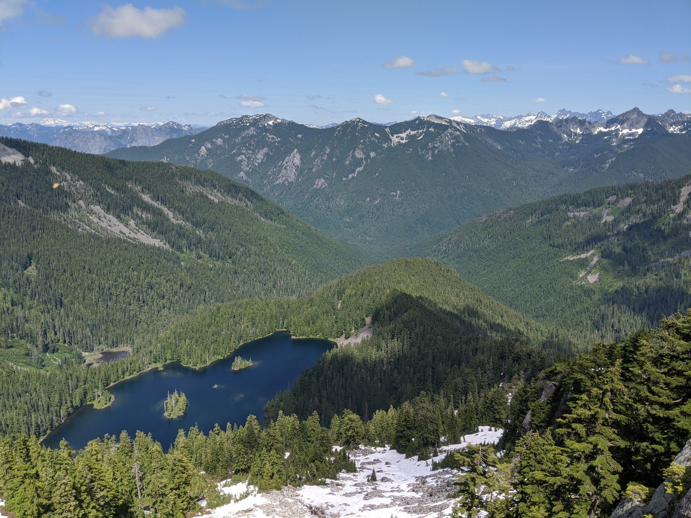Friday dawned cloudy and cool, but with the promise of clearing later in the day I delayed my start to take advantage of the views I knew would await me. Reached the trailhead at Grouse Ridge Road a bit before 10am to find a few spots remaining in the parking area and plenty of parking along the road. Headed up towards the balcony on the recently completed Birdhouse Trail, which replaces the old trail that followed a roadbed farther north. For peakbagging types, the spot elevation requires a short bushwhack on the forested hill just west of the balcony itself.