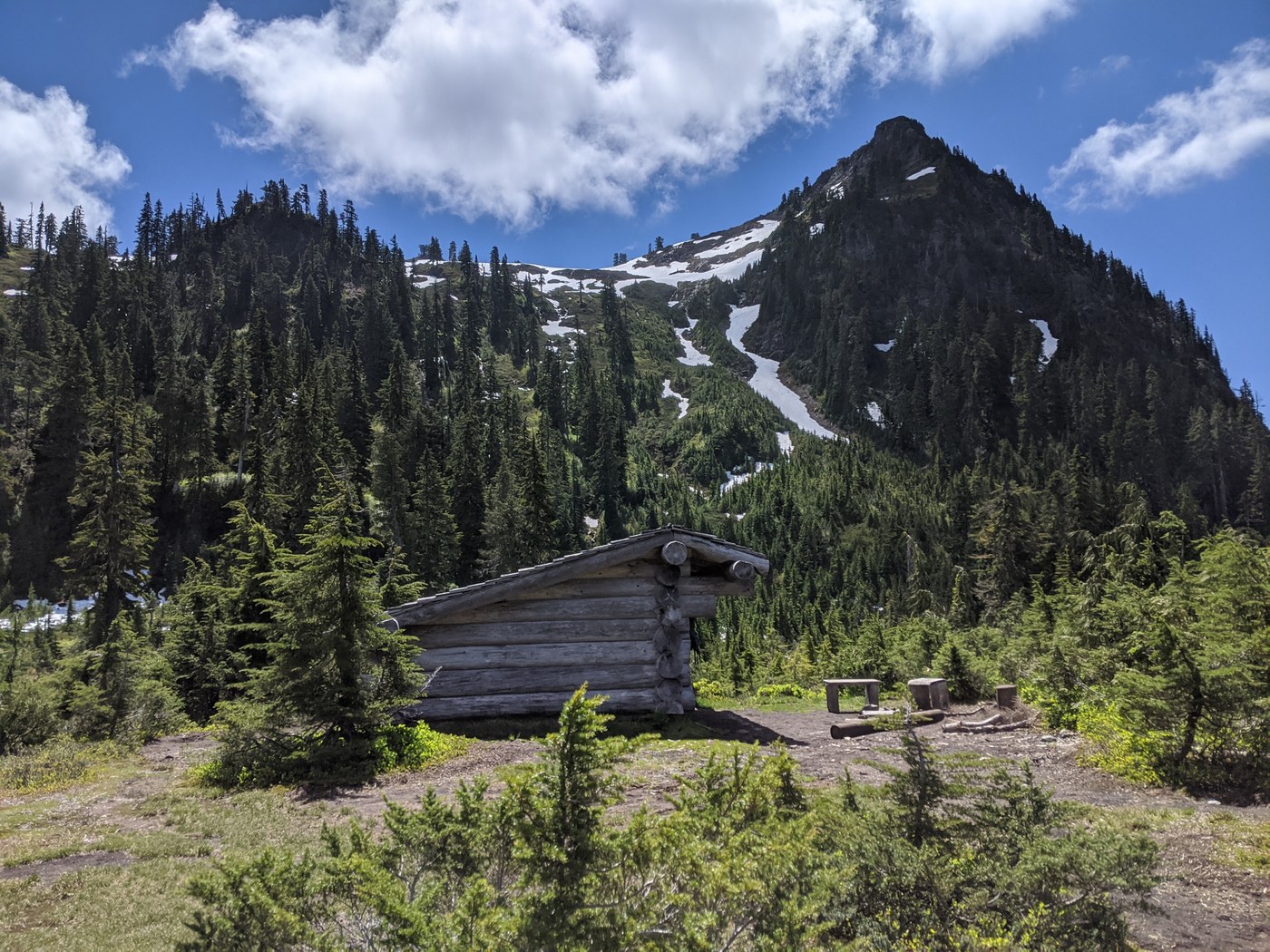 Ridley Creek Trail is in excellent condition! We headed up around 9am and didn't see another soul. There were minimal snow fields to Mazama Park and we had no trouble sticking to the trail. They should be gone in a week or so. When we got to Mazama Park some friendly hikers had already claimed the cabin but we just wanted to check it out before continuing up to Park Butte. There is a newer toilet at Mazama Park with a great view of Park Butte if you're looking for a scenic bathroom break.
